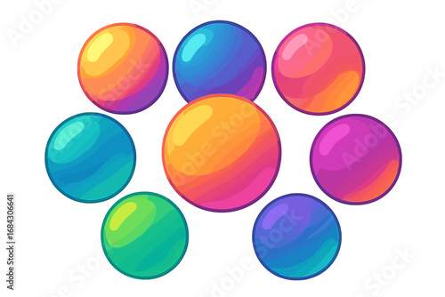 Set of colorful glossy orbs with vibrant gradients. Abstract spheres or bubbles collection. Modern vector illustration for web design, icons, or game assets. Shiny 3D balls.