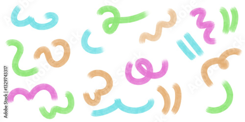Set of colorful, hand-drawn, sketchy party confetti, graphics, for note-taking, annotations, card-making
