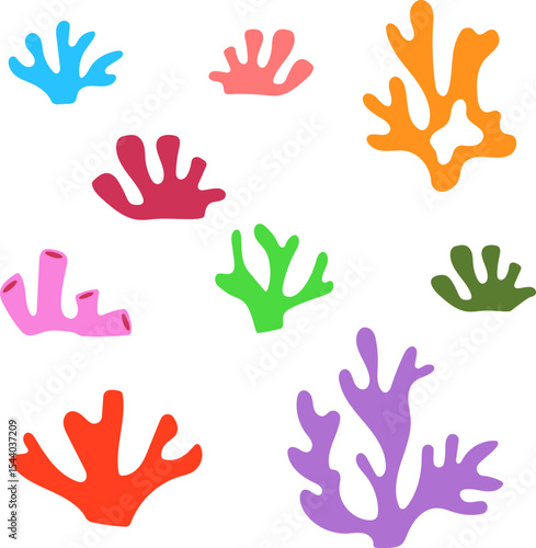 Set of colorful tropical corals. Sealife set with corals.
