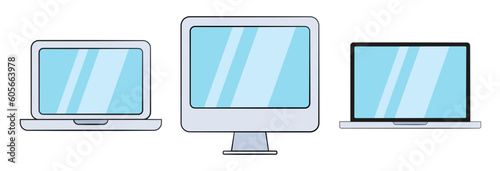 Set of computers with blank screen. Icon. Cartoon. Vector illustration. Isolated on white background
