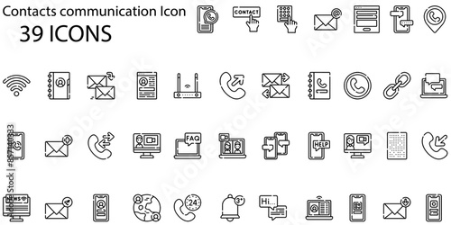 Set of contacts communication icons. Line art style icons bundle. vector illustration