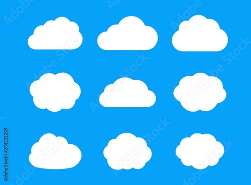 Set of contour cloud flat icons isolated on sky blue background. Cloud icon vector for web, logo, app and ui.