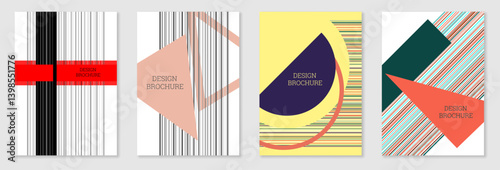 Set of cover design in Memphis style. Geometric design, abstract background. Fashionable bright cover, banner, poster, booklet. Creative colors.