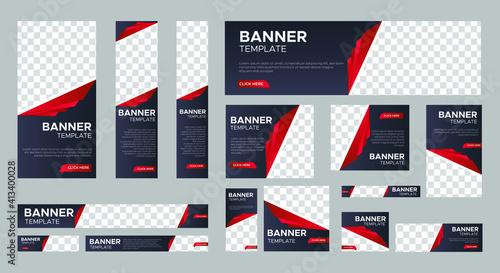 set of creative web banners of standard size with a place for photos. Business ad banner. Vertical, horizontal and square template. vector illustration EPS 10