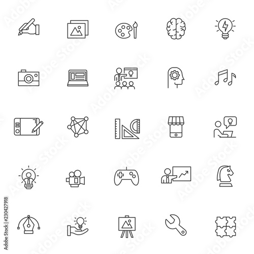 set of creativity icons with simple line concept, art, idea, vector eps 10