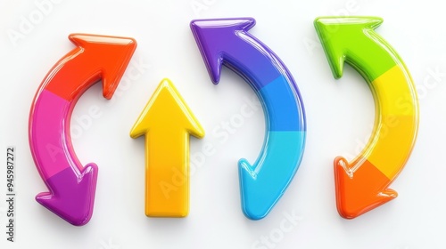 set of curved multi-colored arrows on a white background
