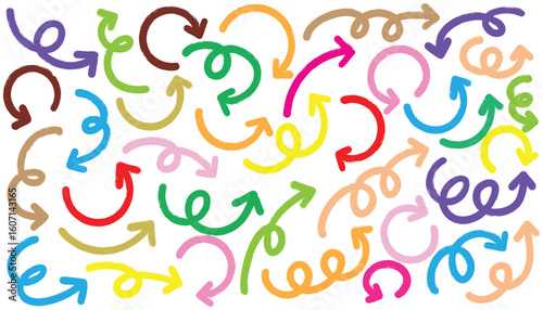 Set of cute pen line doodle element vector. Hand drawn doodle collection of arrows colorful.