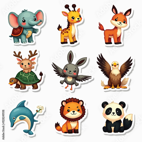 Set of cute wild animals. Flat animals vector collection