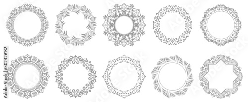 Set of decorative frames Elegant vector element for design in Eastern style, place for text. Floral gray and white borders. Lace illustration for invitations and greeting cards