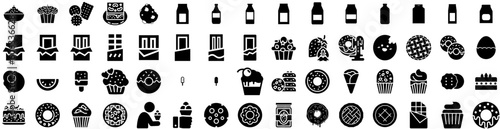 Set Of Dessert Icons Isolated Silhouette Solid Icon With Food, Bakery, Cake, Sweet, Pastry, Dessert, Delicious Infographic Simple Vector Illustration Logo