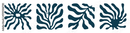 Set of different floral Matisse art. Squared patterns of abstract twisted flowers with groovy leaves
