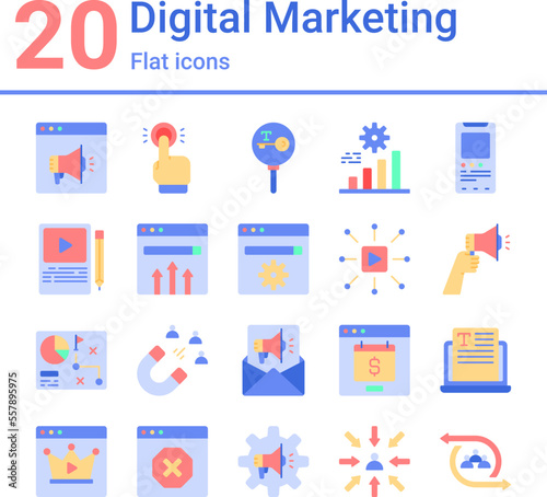 Set of Digital Marketing Flat Icons for Design elements for mobile, web applications, presentation, etc.