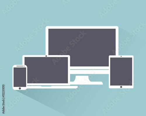 Set of display, laptop, tablet and mobile phones electronic device icons, isolated outline on a light background stylish vector illustration EPS10