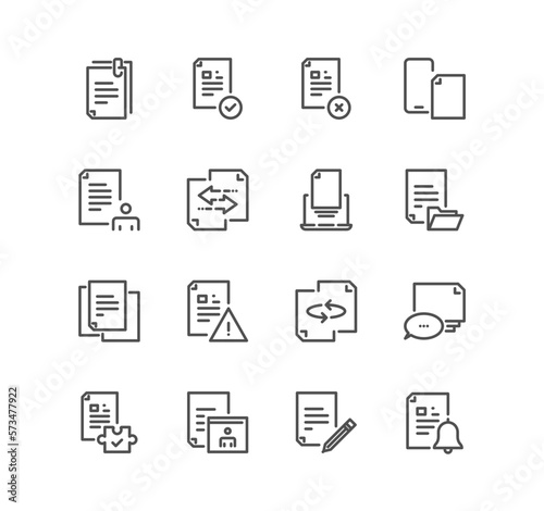 Set of documents and paperwork icons, office work, document flow, contract, file folder and linear variety vectors.