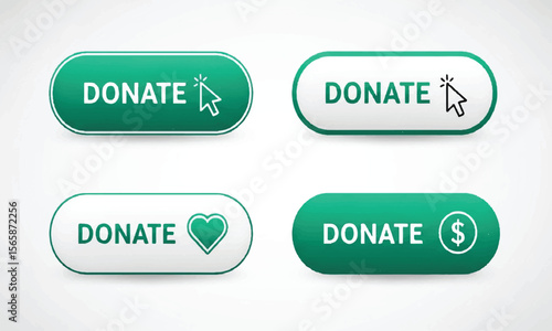 Set of donate buttons with cursor, heart and dollar sign icons