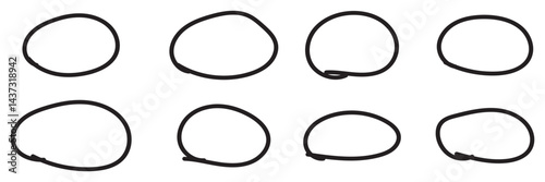 Set of drawn black marker round frames on white background. Hand drawn marker stroke style doodle black circle frame, brushstroke oval shape for highlighting, underlining, black circle eps 10