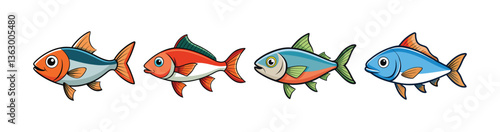 Set of Dynamic Fusilier in Colorful Marine Artwork