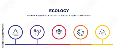set of ecology thin line icons. ecology outline icons with infographic template. linear icons such as and books, eco energy, m leaf, save water, eco vector.