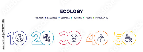 set of ecology thin line icons. ecology outline icons with infographic template. linear icons such as nuclear energy, energy globe, green energy, renewable biofuel vector.