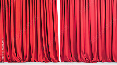 Set of Elegant Red Curtains Isolated on a White Background Generative AI