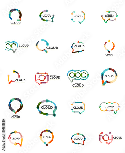 Set of flat linear design speech cloud logos. Talk bubbles, modern geometric industrial thin line icons