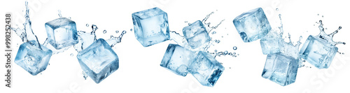 Set of flying melting ice cubes, cut out