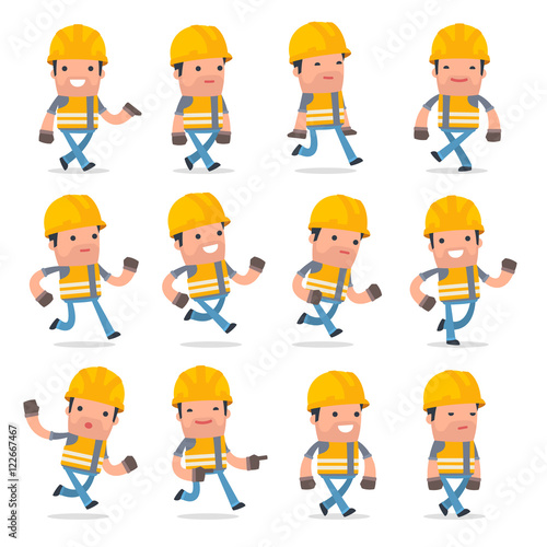 Set of Funny and Cheerful Character Incompetent Builder goes and