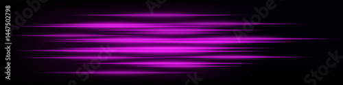 Set of futuristic pink horizontal neon speed lines on dark background. Abstract glowing beams ideal for technology, interface, digital effects. EPS vector illustration.