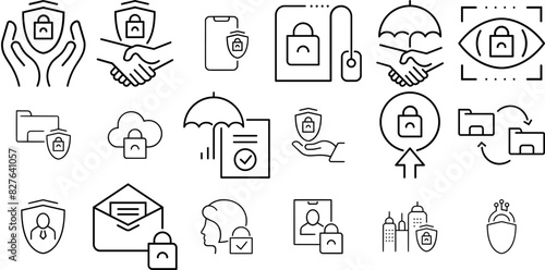 Set Of Gdpr Business Icons Web Header Banner Design Containing Lock,Protection,Data,Gdpr,Secure Set Vector Flat Line Icons