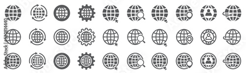 Set of globe icons. World globe, world wide web. Earth symbol, planet icon. Map planet, internet globe, travel. Vector illustration.