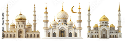 Set of Golden mosque dome vector shape with detailed pattern on pure on transparent png background. Ai generated