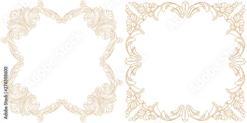 Set of golden vintage border frame engraving with retro ornament pattern in antique baroque style decorative design. Vector