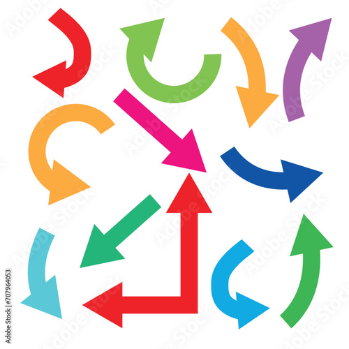 Set of hand drawing comic bold arrows. Colorful hand drawing design elements isolated on transparent. Vector collection.