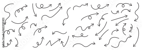 Set of hand drawn arrows. Simple arrows collection isolated on white background. Arrow mark icons vector.