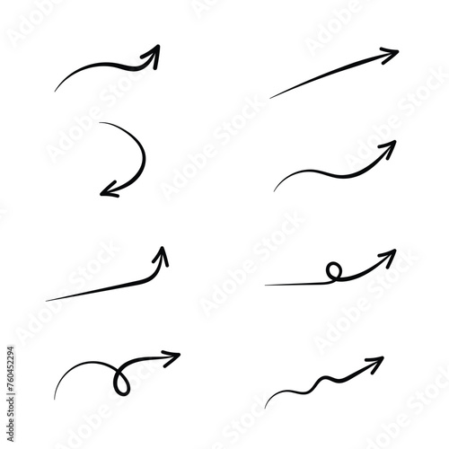 Set of hand drawn arrows. Vector illustration isolated on white background.