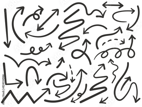 Set of hand drawn calligraphy arrows vector doodle design elements