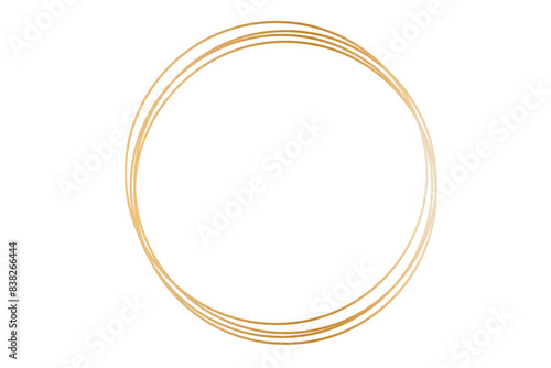 Set of hand drawn golden circles and ovals. Highlight circle frames. Ellipses in doodle style. Vector illustration isolated on white background. Vector illustration