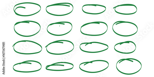 Set of hand drawn red doodle ellipses. Bright red scribble ovals and bubbles to circle and highlight text. Collection of different brush drawn black circles. Marker round elements isolated on white