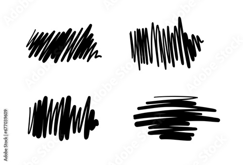Set of hand drawn scribble brush strokes vector design elements. Scratched sketch isolated on white background Doodle Brush Style.