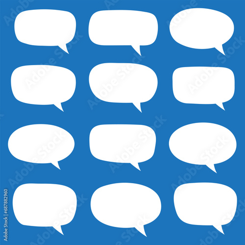 Set of hand drawn speech bubbles. Speak bubble text, cartoon chatting box, message box. Blank empty white speech bubbles.