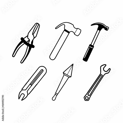 Set of hand tools isolated on white background for construction, repair, and carpentry work