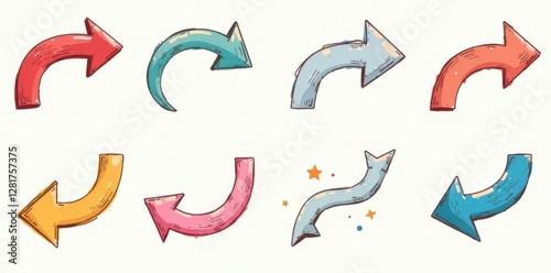 Set of hand-drawn arrow icons, various styles, vector format , element, diagonal