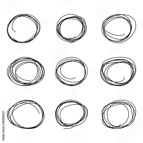 Set of hand-drawn vector circles. Stroke, important choice, decoration. Doodle