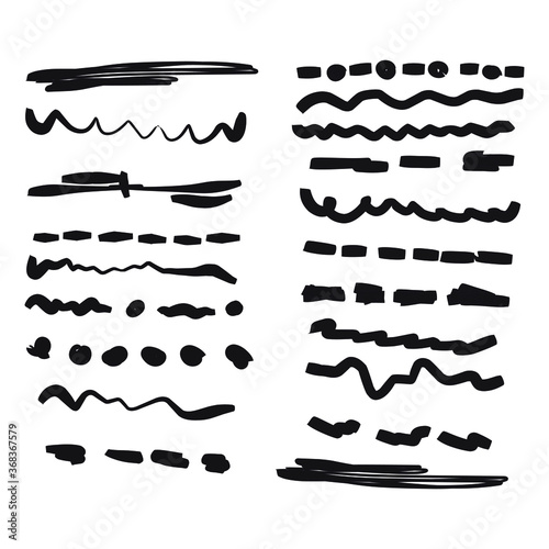 Set of handmade, hand drawn underline strokes isolated on white background EPS Vector