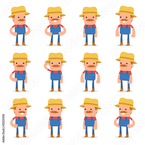 Set of Happy and Cheerful Character Farmer standing in relaxed p