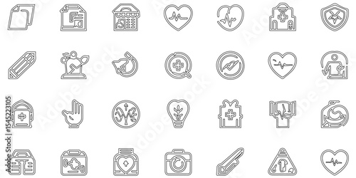 Set of health care and medical icons in line style with outline, collection of icons designed for use and home care services.