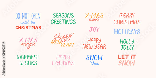 Set of holiday christmas and new year quotes. Vector illustration of hand drawn lettering inscriptions for greeting cards and invitations