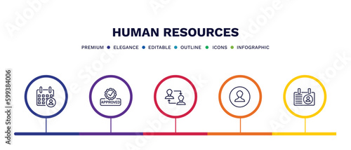 set of human resources thin line icons. human resources outline icons with infographic template. linear icons such as appointment, approved, change personal, profiles, personal profile vector.