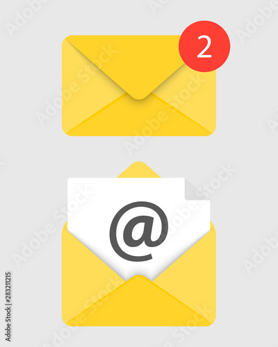 Set of icons Mail, E-mail. Opened and closed envelope. Online postal sign.Paper document enclosed in an envelope. New Message. Mail icon. Vector illustration.