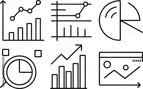 Set of icons representing charts and graphs for data analysis